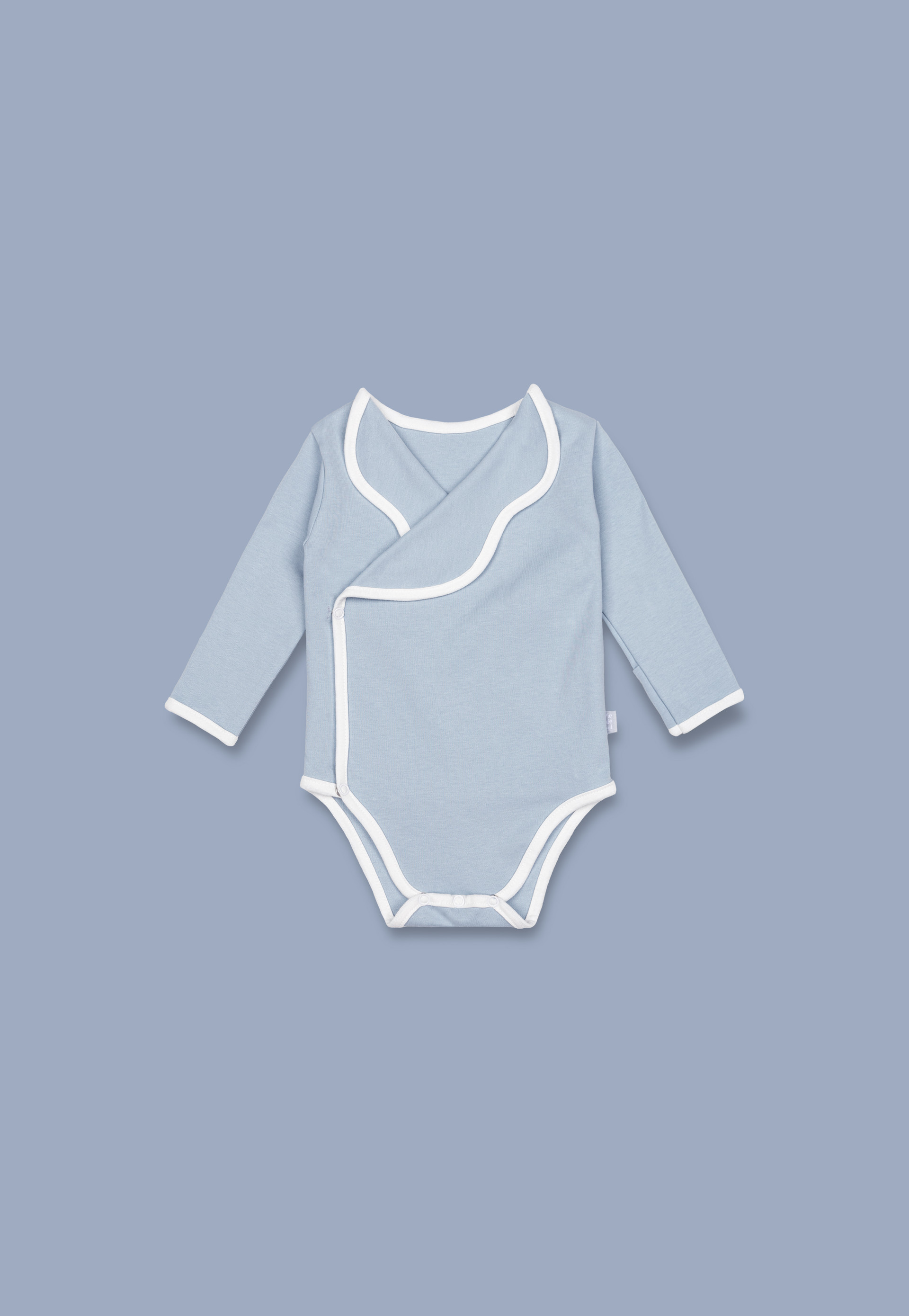 버튼이 달린 오픈형으로 착용하기 쉽고, 더블 오버랩 디자인 덕분에 배앓이를 방지해줍니다. 소매 밑단은 두겹으로 덧대어, 손을 씌워주면 손싸개 역할을 해줍니다.