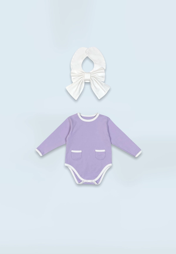 데일리로 활용하기 좋은 베이직 바디수트와 드레시한 무드를 자아내는 리본 턱받이와 발싸개 세트입니다.