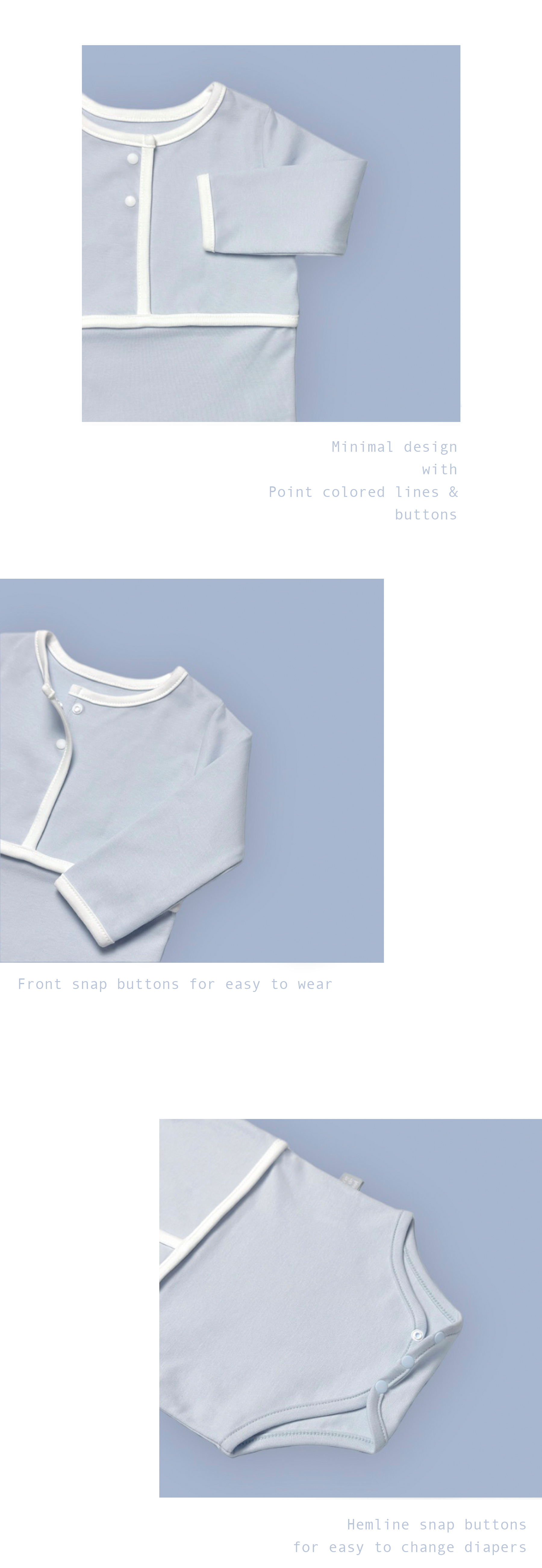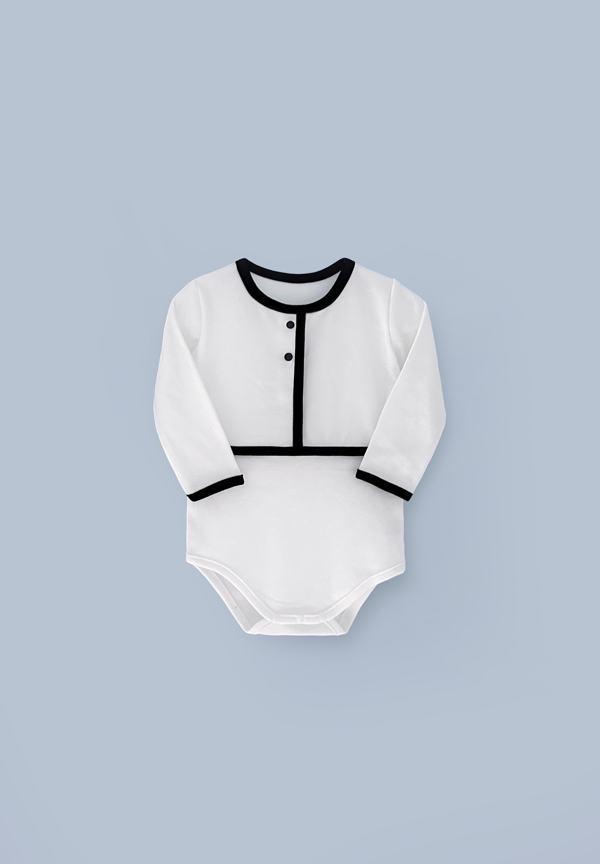 군더더기 없이 깨끗한 도화지, 그 위를 살포시 지나가는 배색 라인이 포인트가 되어주는 바디수트입니다.