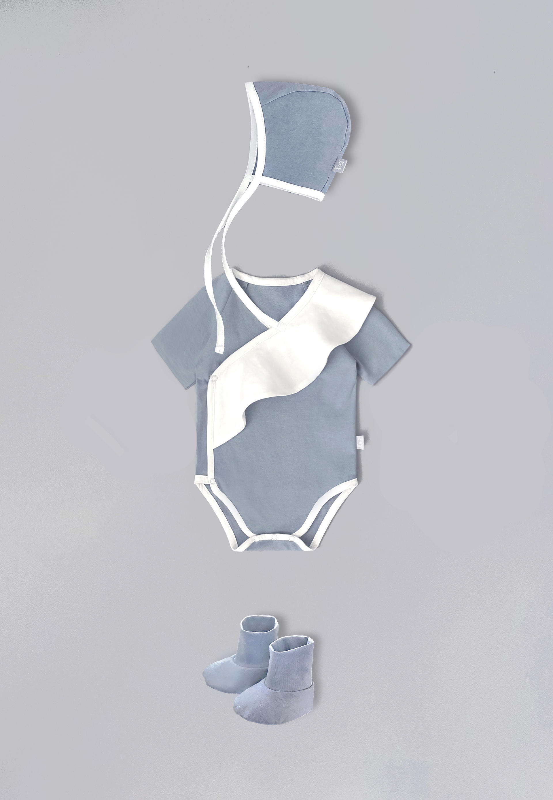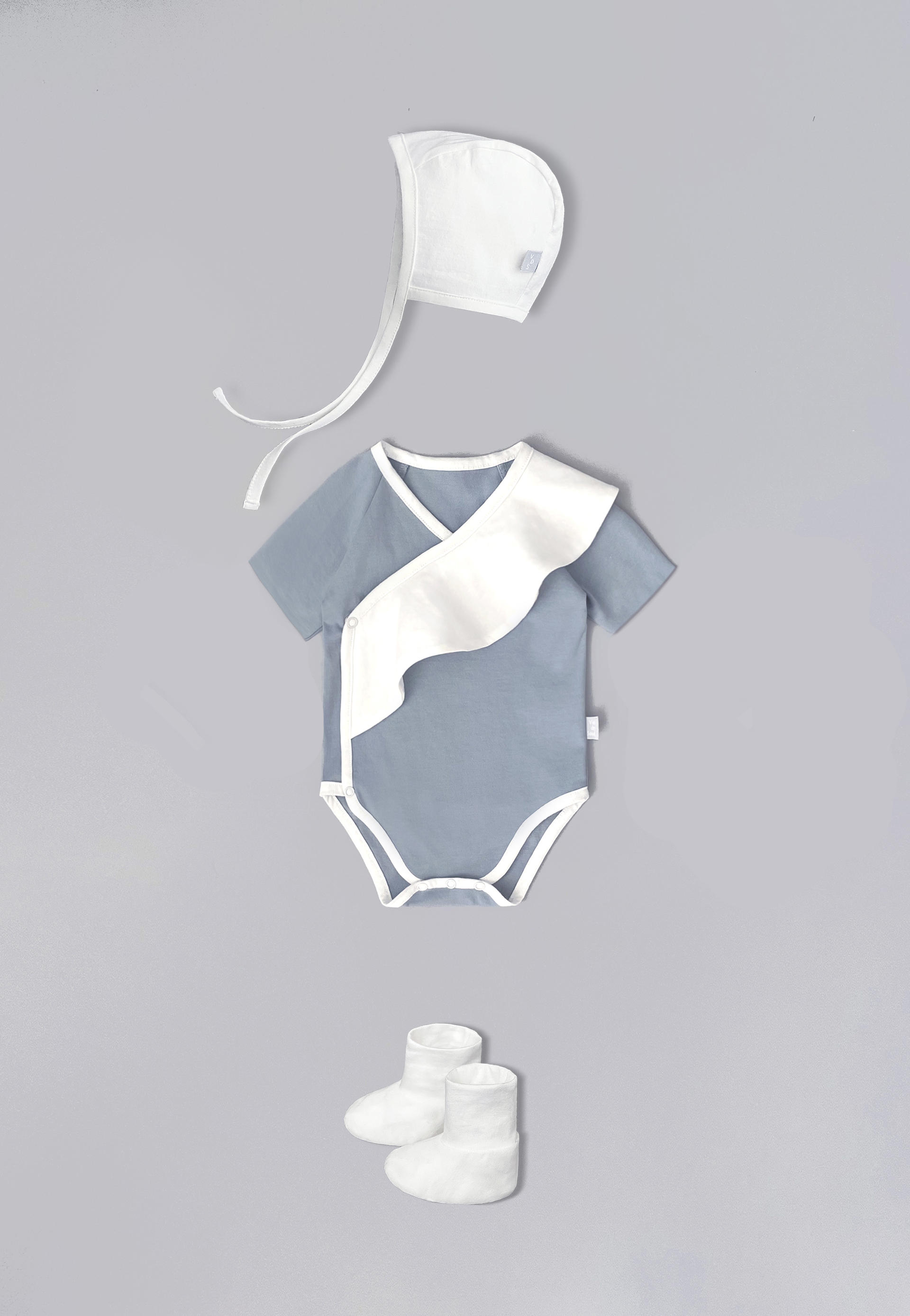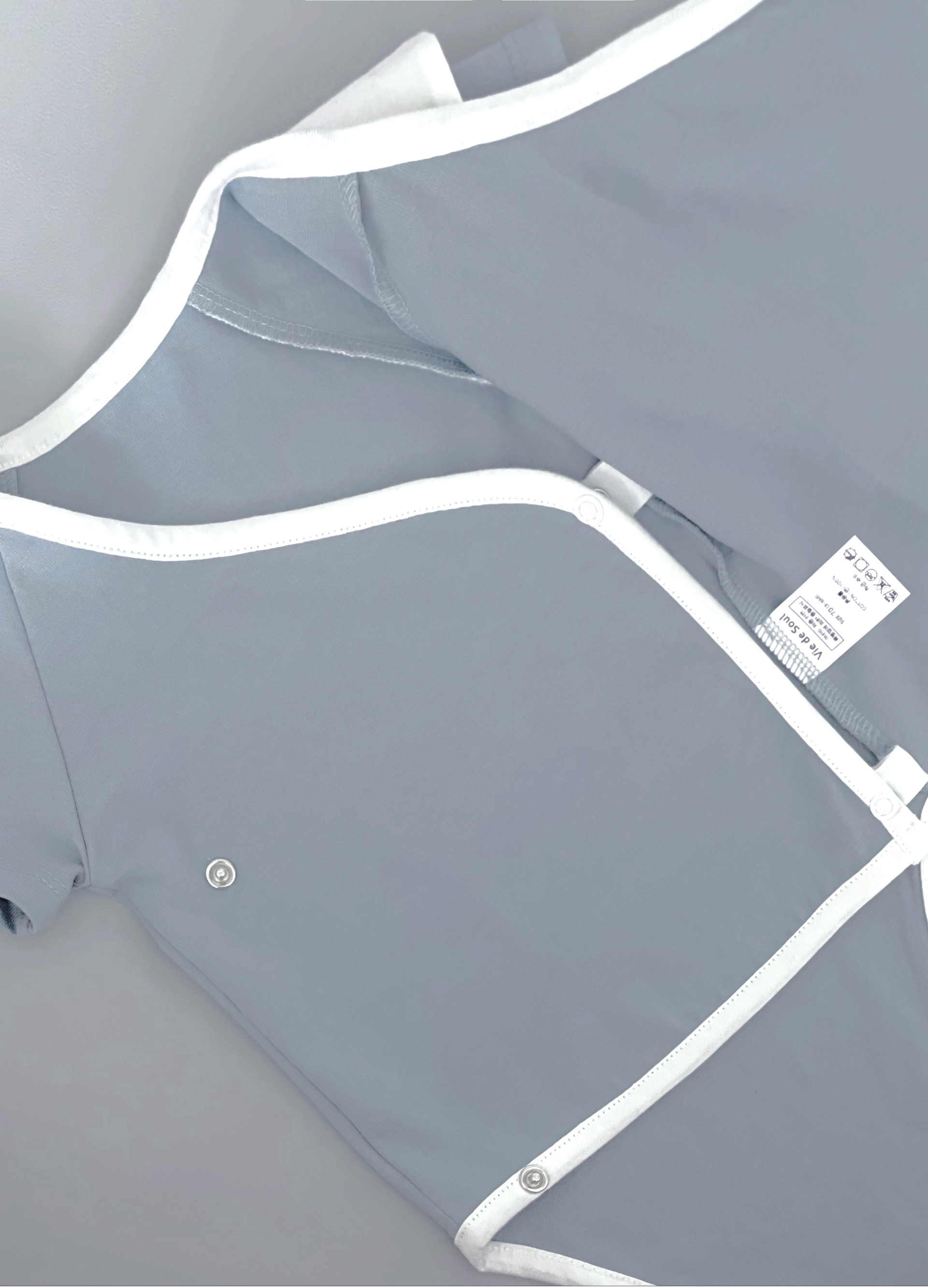 러플 바디수트 반팔 (미스티 블루) Ruffle Bodysuit Shortsleeves (Misty Blue)