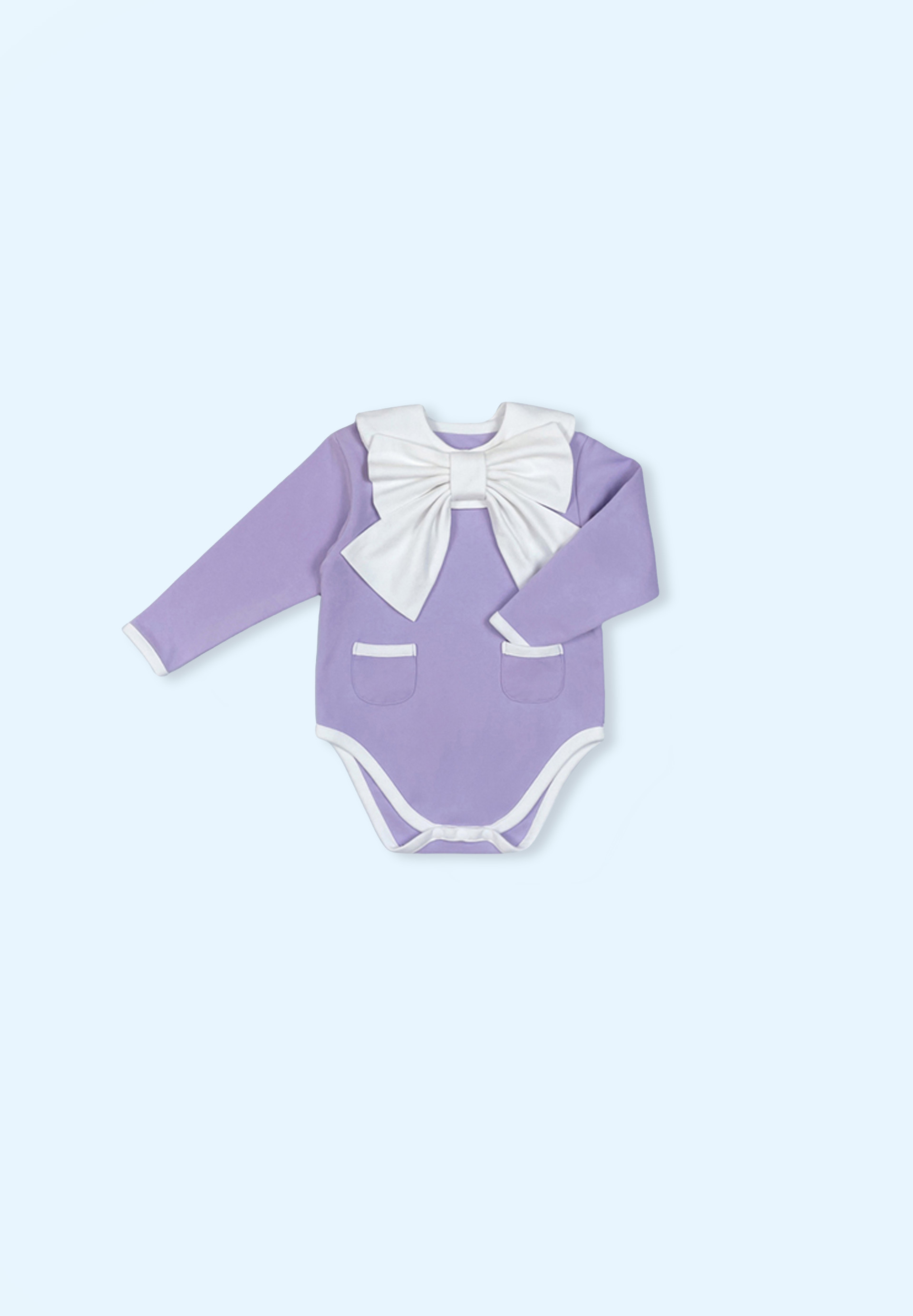 데일리로 활용하기 좋은 베이직 바디수트와 드레시한 무드를 자아내는 리본 턱받이 세트입니다.